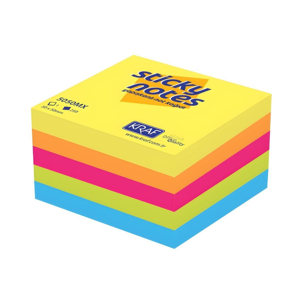 Kraf Yapışkanlı Not Kağıdı Küp 50x50 mm 5 Renk 250 Yaprak