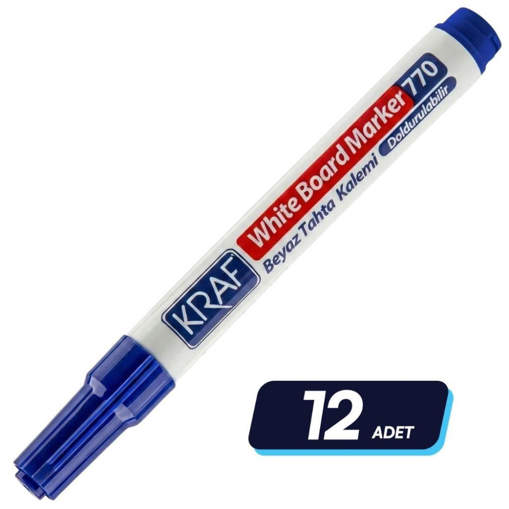 Kraf Beyaz Tahta Kalemi Doldurulabilir 770 Mavi 12'li Paket