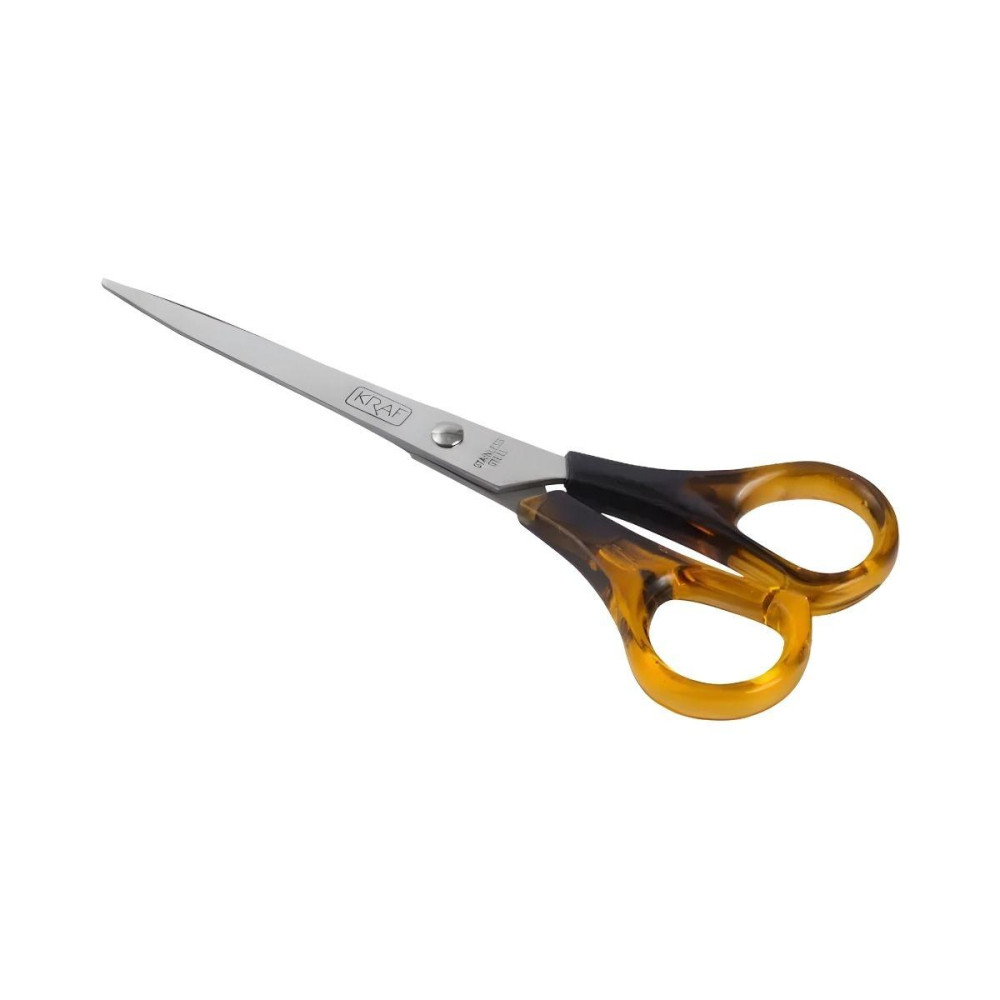 Kraf Akrilik Saplı Makas, günlük kesim işlemleri için pratik ve dayanıklı bir kırtasiye ürünüdür. Keskin metal bıçakları sayesinde kağıt, karton ve benzeri materyallerin kolay ve düzgün bir şekilde kesilmesine yardımcı olur.